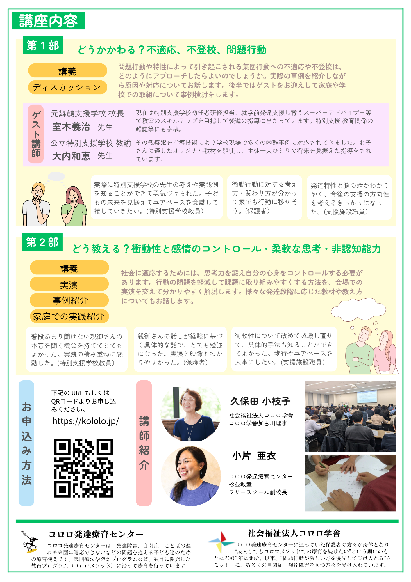 【アーカイブ配信】9/7開催講演会「どう関わる?不適応・不登校・問題行動」