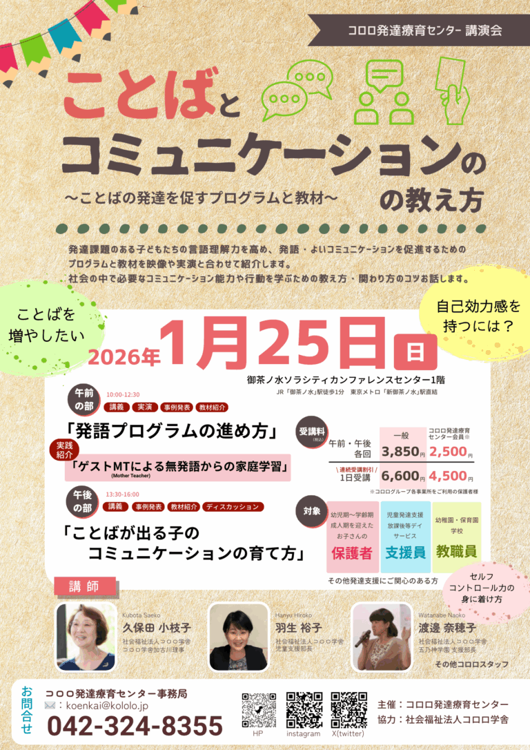 【講演会】コロロ発達療育センター主催 「ことばとコミュニケーションの教え方 ~ことばの発達を促すプログラムと教材~」