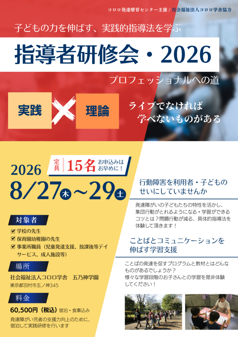 2026年指導者研修会 こどもの力を伸ばす・実践的指導法を学ぶ2泊3日の宿泊研修