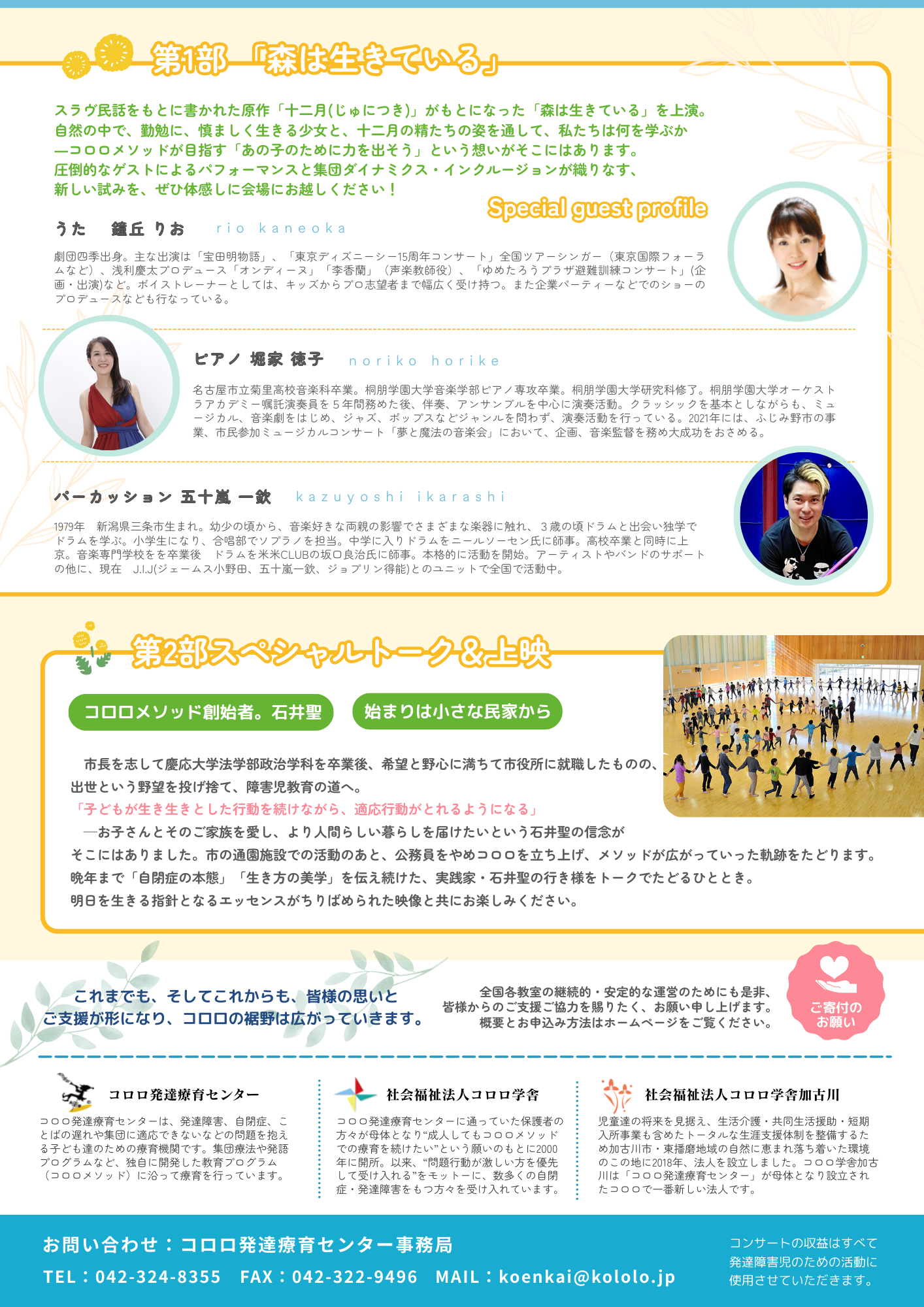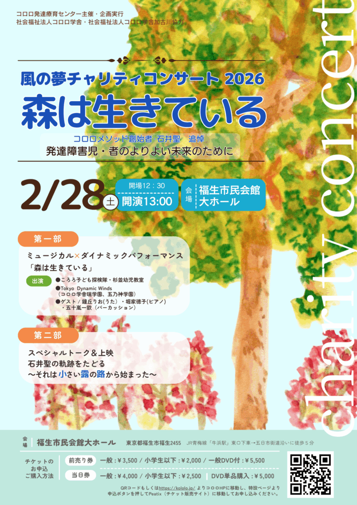 2026年2月28日(土)開催! 風の夢チャリティコンサート2026「森は生きている」発達障害児・者のよりよい未来のために 会場/オンラインライブ配信